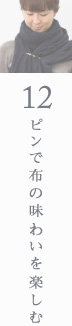 | 肩に羽織るように巻いて、 胸の前でギャザーをつくりながらまとめ、 ゴムでとめます。 布の端のふぞろいなところが 出るようにととのえると、 ニュアンスがだせますよ。 |