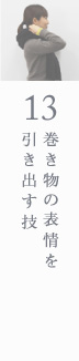 | 長いほうをうしろへ。 | ぐるりとまわします。 | さらに、前にたらします。 |