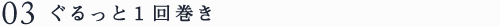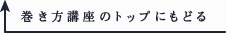 | 左右をクロスさせて | うしろにまわし、もういちど、ぐるり。 | わっかの中に端を押し込みながら前へまわします。 |