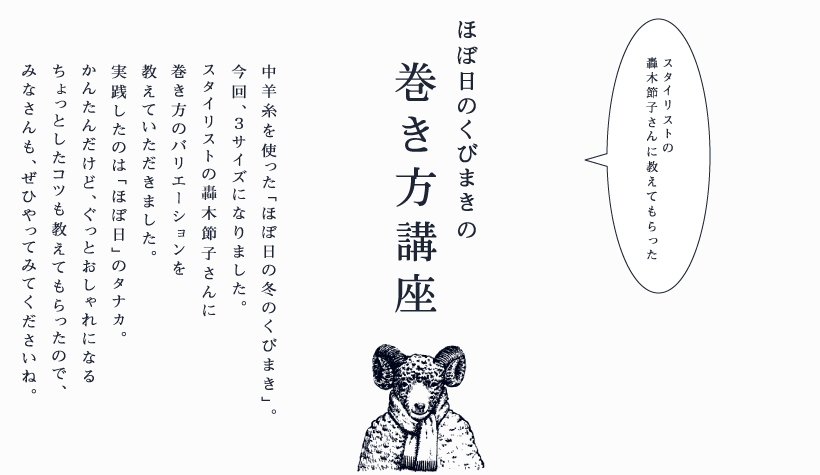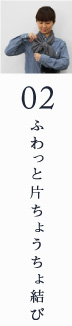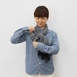 | 最初にかけたくびまきの上に のっけるように巻くと、 高さが出てかっこよくなります。 |