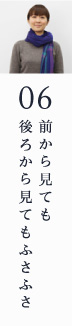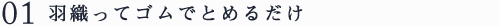 | 長いほうの片方を、肩のうしろにたらして、 首まわりをととのえたら、できあがり。 |