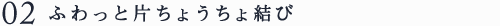 | 片ちょうちょ結びをつくります。 | ぎゅっとしめて、結び目をコンパクトにします。 | ちょうちょをひろげるようにととのえます。 |