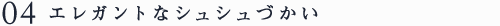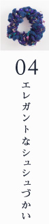 | シュシュを立てるようにととえると、 立体感がでます。 |