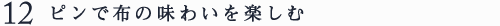 | ピンをつかってギャザーをよせながら、 もう片方にとめて、できあがり。 |
