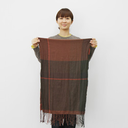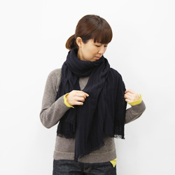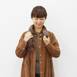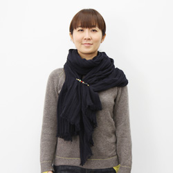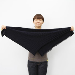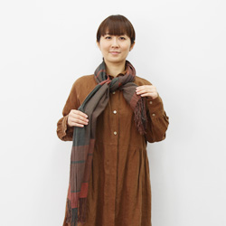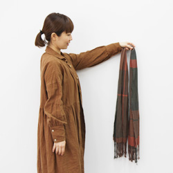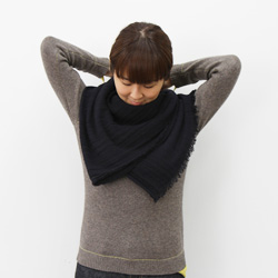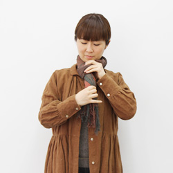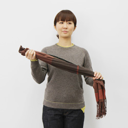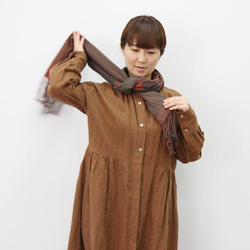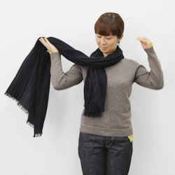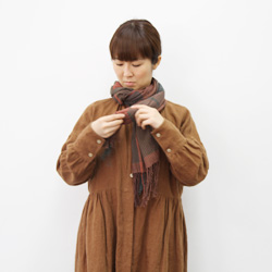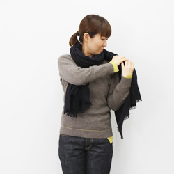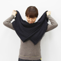 | フリンジのほうが下になるように 首の前でクロスさせます。 |