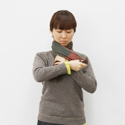 ぐるりとまわして、ひろげます。 | 肩をつつむように前にたらします。 |