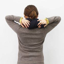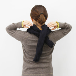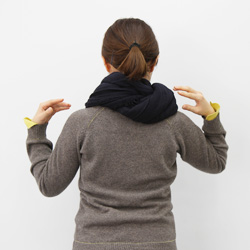 | 首から胸をつつむように、 うしろにもっていきます。 |