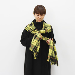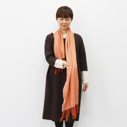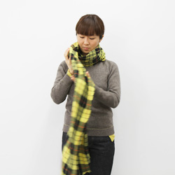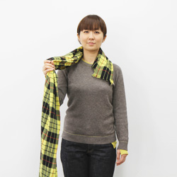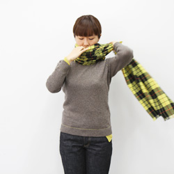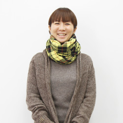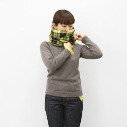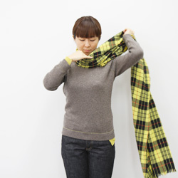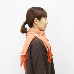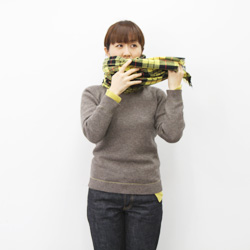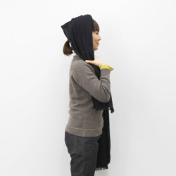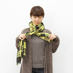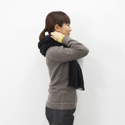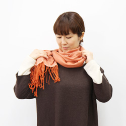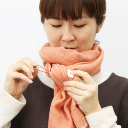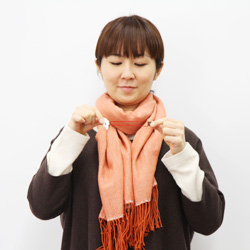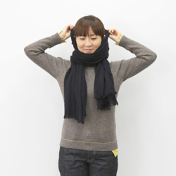 長いほうを首まわりに巻いていきます。 |