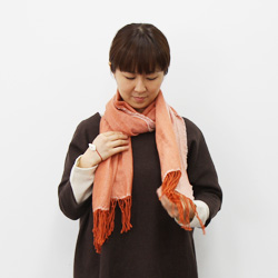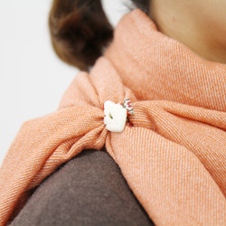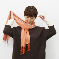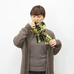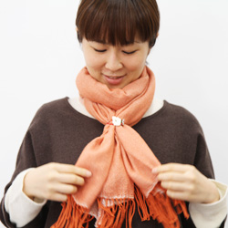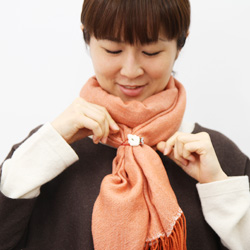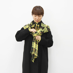 | 肩にかけながら、かたほうを短めにして、 長いほうが上にくるように、 胸の前でクロスさせます。 |
