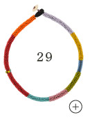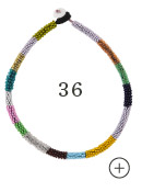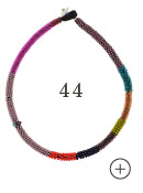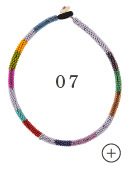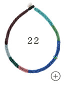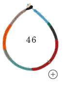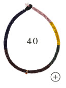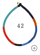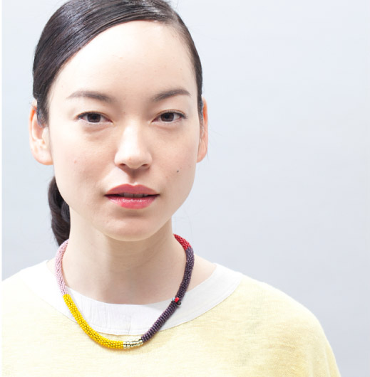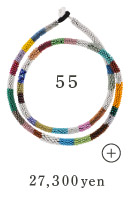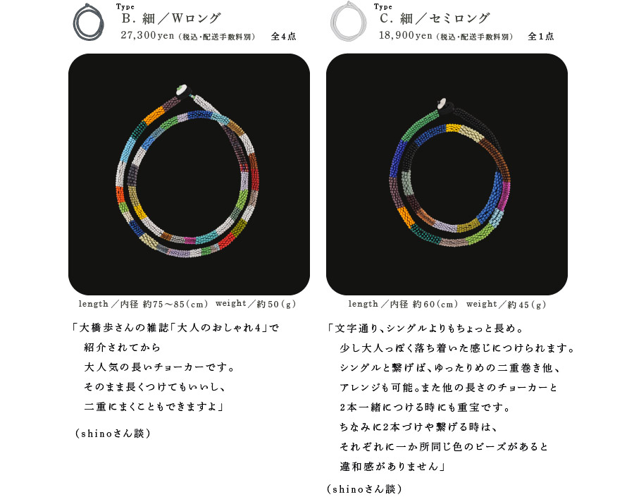 「選ぶポイントは、色よりも長さの方が つけ心地を左右するように思います。 体型や洋服の襟ぐりなどにあわせて、 まずはご自分の好きな長さを1本選んでみてください。 色については、実際つけると印象が違う反面、 どんな色でも意外なほどしっくり馴染むので、 冒険のしがいもあります。 自分の好きな色が必ずしも似合うとは限リません。 例えば紫は女性に人気がありますが、 肌の色によっては地味な印象になることも。 迷った時は思い切って 明るめの色を試してみてください」(shinoさん)