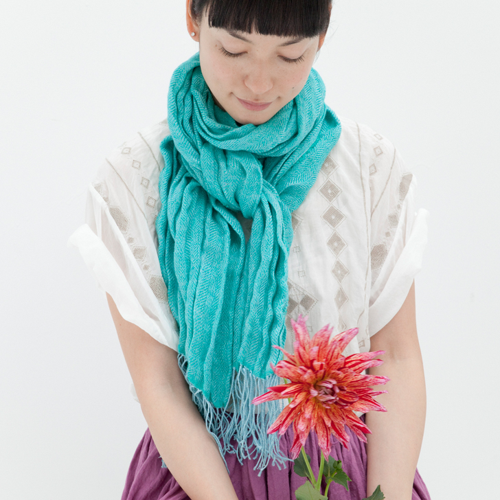 ターコイズブルーと、淡いみずいろで糸を染め、