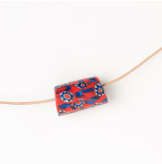 千の花々が咲き乱れるような美しさ、 という名前をもつビーズです。 ベネチアンビーズの生産地であるムラーノ島では ムッリーネとも呼ばれるミルフィオリビーズが 19世紀、アフリカ交易玉として作られ、 計り知れない高度な技術と豊かな色彩が特徴です。 ベースになるガラス種にカットした 花や星文様のガラスチップを貼り付け、 デザインされていきます。 ミルフィオリはこのカットされた文様の美しさと 色彩の美しさが問われるビーズ。 その中でも筒状形は貴重です。 また、貼り付けられたチップは 人気のシェブロンビーズのカットされたもので、 大変美しい文様となっています。 (インドラさん 談)