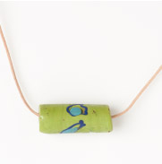 もともと、お守りとして発祥しているビーズですが、 中でもアイビーズ(オッキオ・瞳)といわれる ドット文様の付いたビーズは 邪視(呪いや災い)から守ってくれる “目”の文様がついたお守りとして たいへん人気の高いビーズです。 一見、トルコのお守りである ナザールボンジュウを彷彿とさせます。 大胆なデザインはヴェッテ (ガラスの上に細いガラス棒を溶かし 絵付けする技法)と パーツを貼り付けるモザイクの技法で表現され、 シンプルなデザインでありながら、 手の込んだビーズです。 (インドラさん 談)