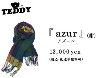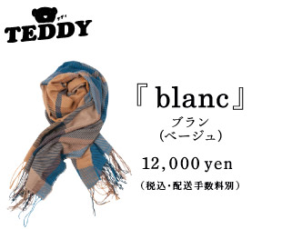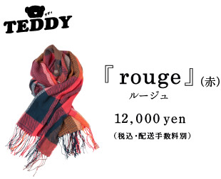 ほぼ日のくびまき、新作の「テディ」は、 「アズール(紺)」 「ルージュ(赤)」 「ブラン(ベージュ」の3デザイン。 サイズは約160×56cmのマフラーサイズです。