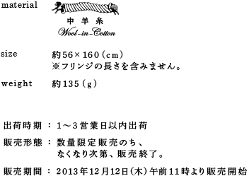 使っている糸の量は同じなのに、 空気を多くふくんでいるため、 くびにまいたときのあたたかさも、たっぷり。 いつもの「くしゅくしゅ・ぽん!」の弾力も、 さらにアップしています。 「自然なしわの感じ」も魅力のひとつである 中羊糸のくびまきですが、 この織り方ですと、しわになりにくく、 ちょっとニットのような感覚でまいていただけます。