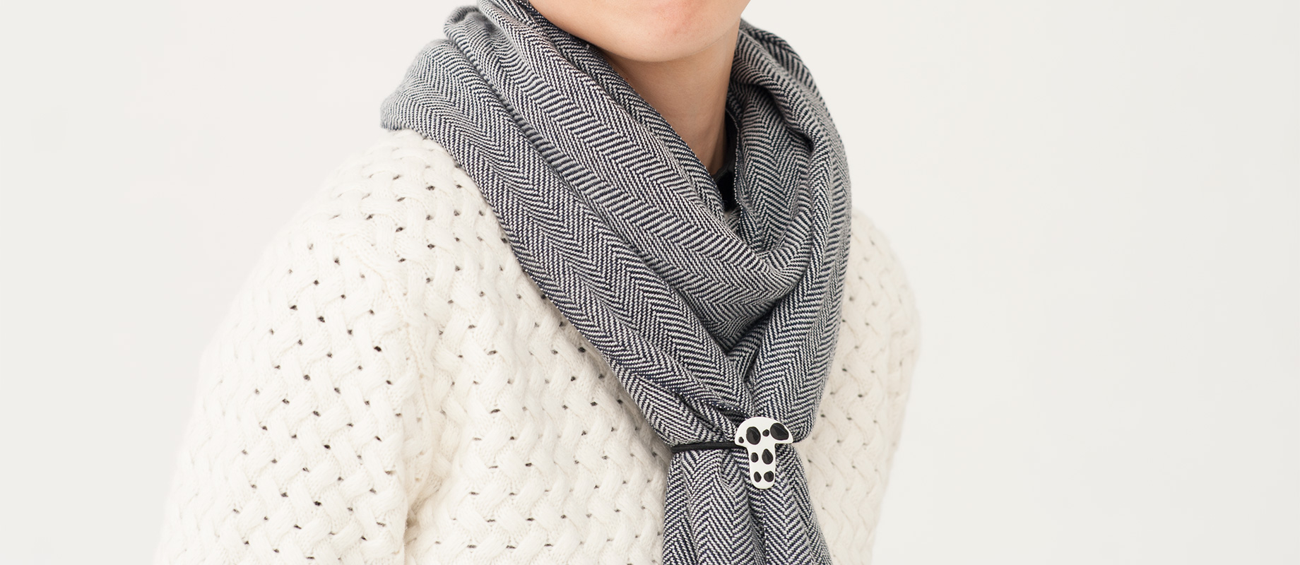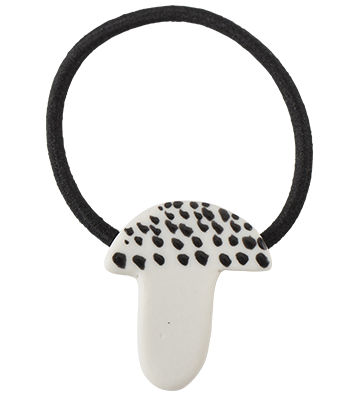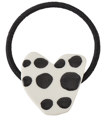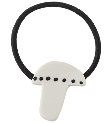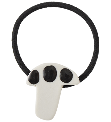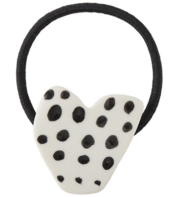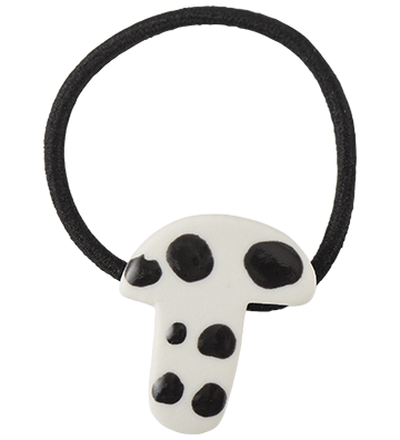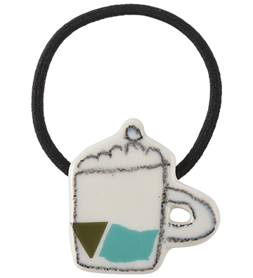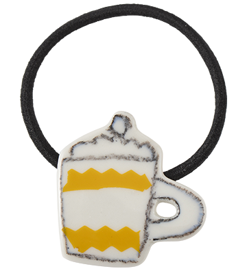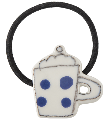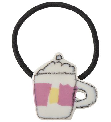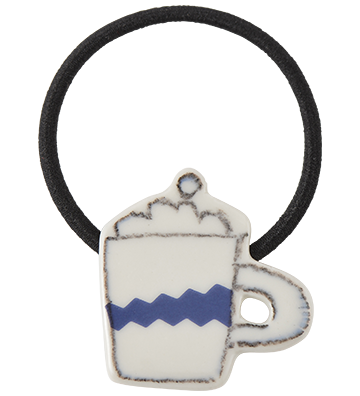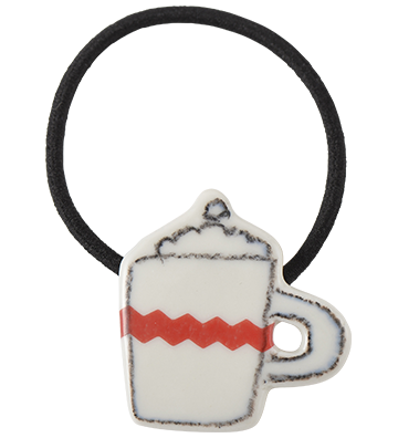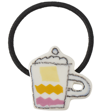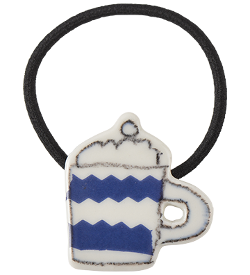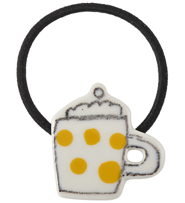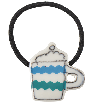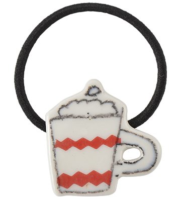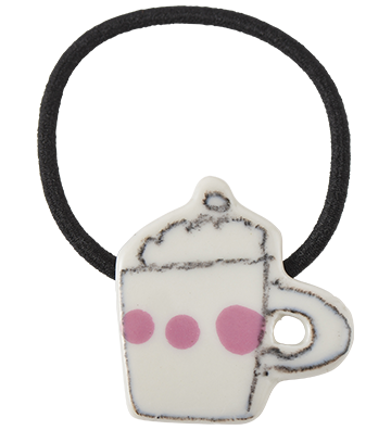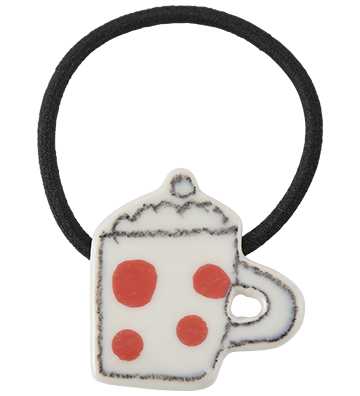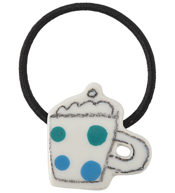 かわいいデザインの磁器のチャームがついたくびまきどめ。