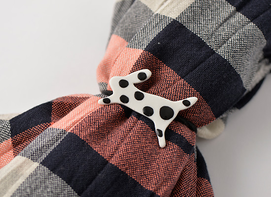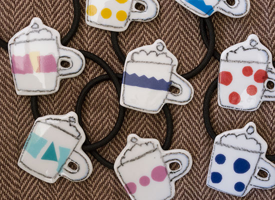 かわいいデザインの磁器のチャームがついたくびまきどめ。