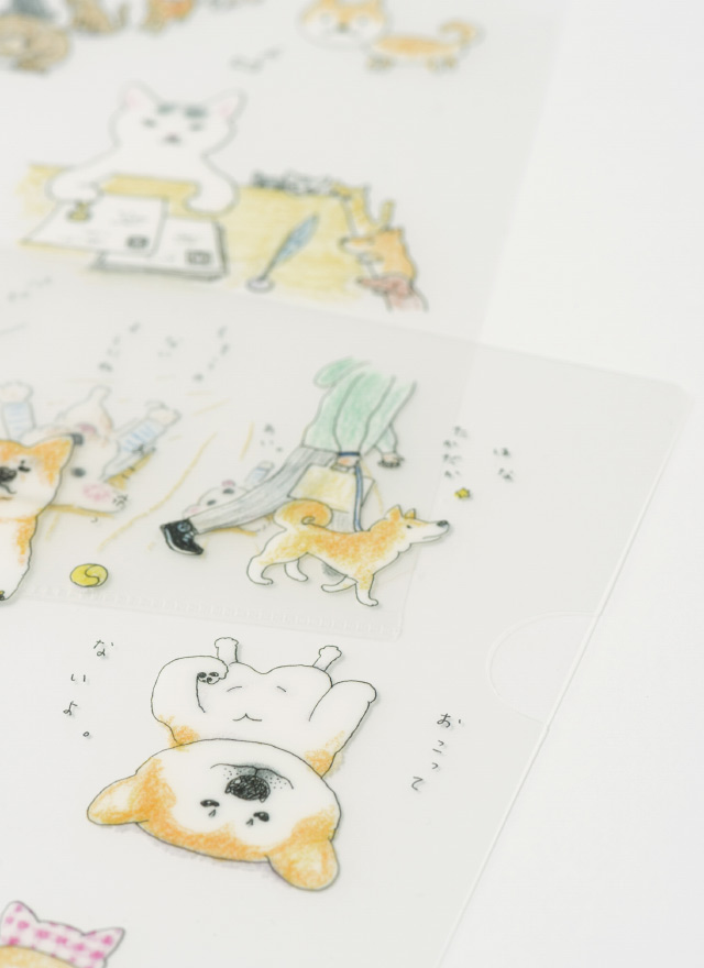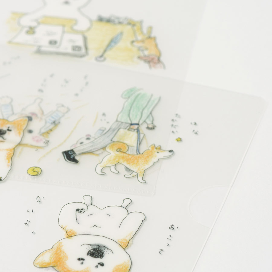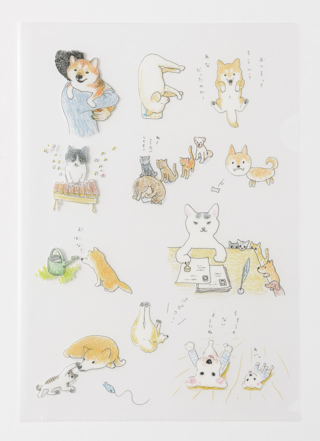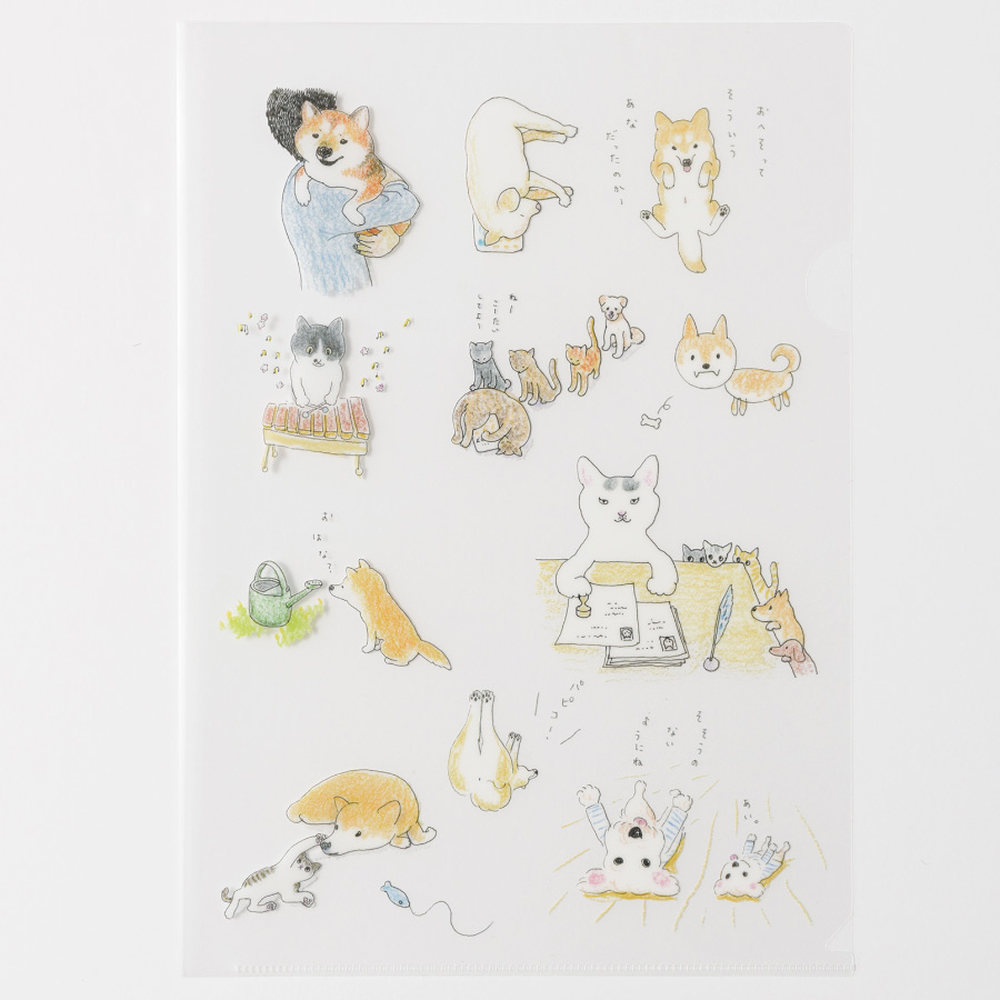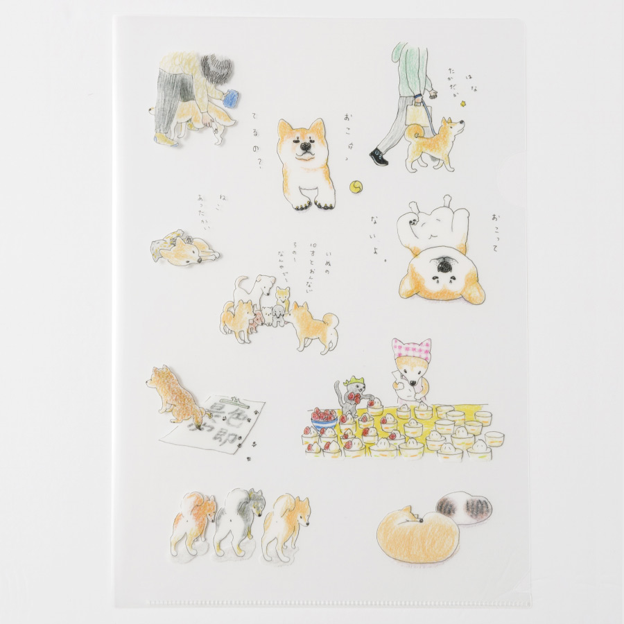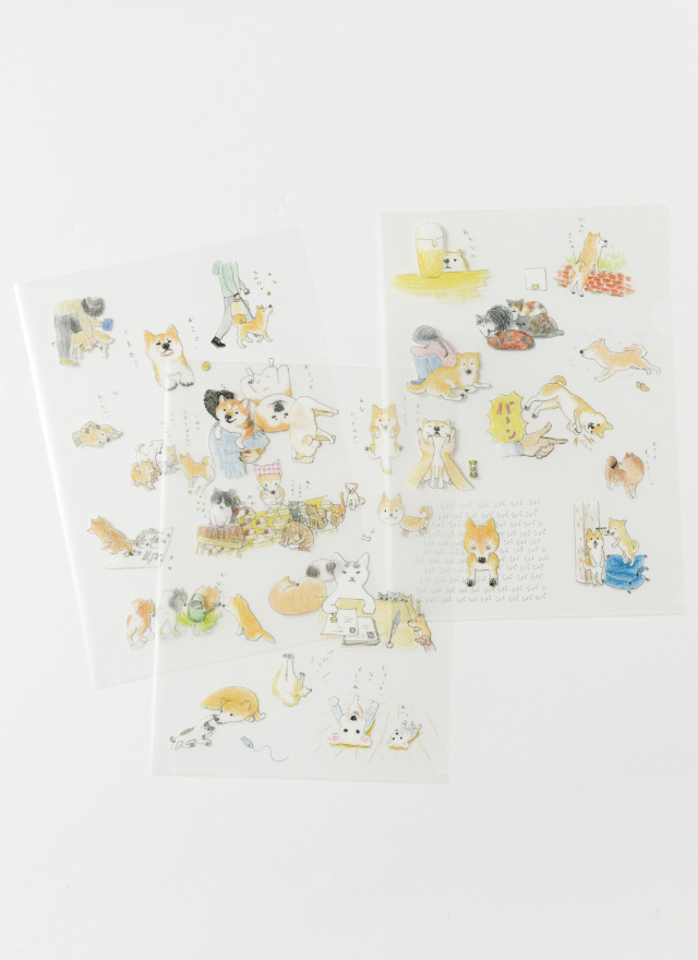 柴を中心に、いろんないぬやねこがちりばめられたクリアファイルです。 いぬやねこたちがつぶやくことばもかわいらしいくて、ついついうなずいてしまいそうなものばかり。 A4サイズの3枚セットです。 サイズ:A4(3枚1セット)