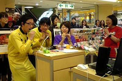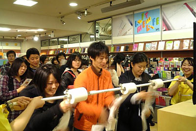 ▲トップバッターは神戸ロフト。トイレットペーパー早巻きゲームで