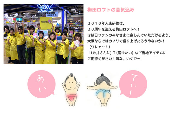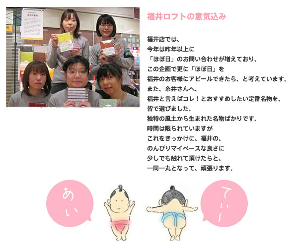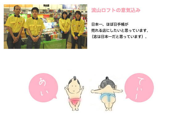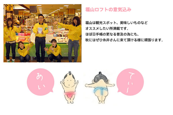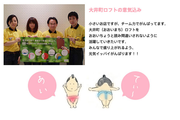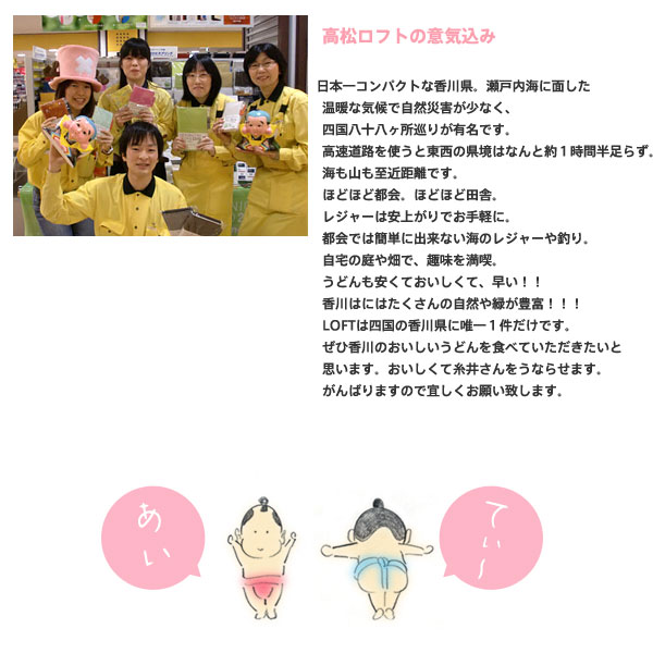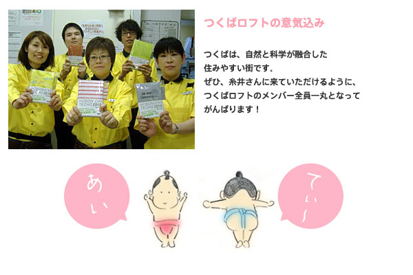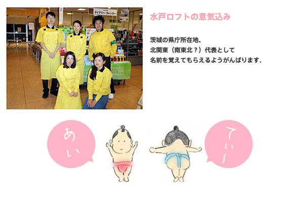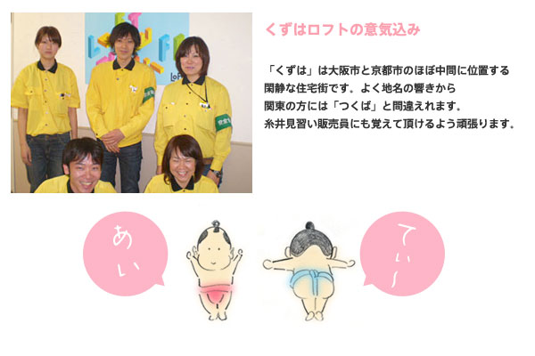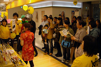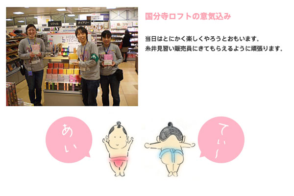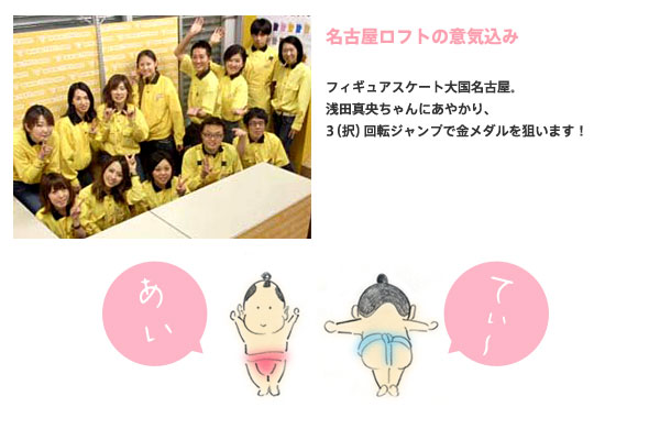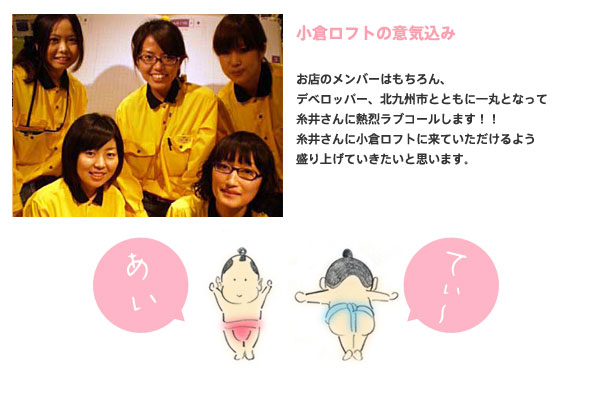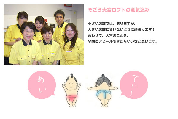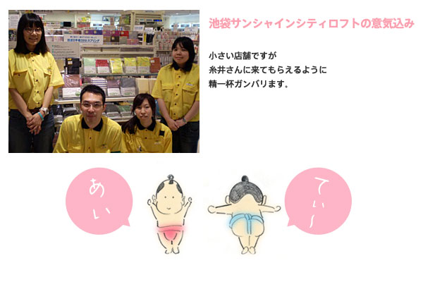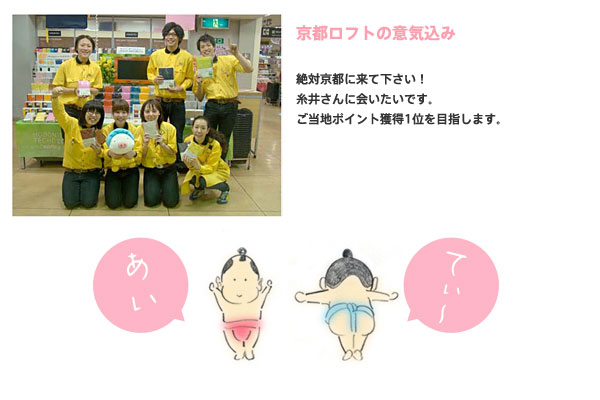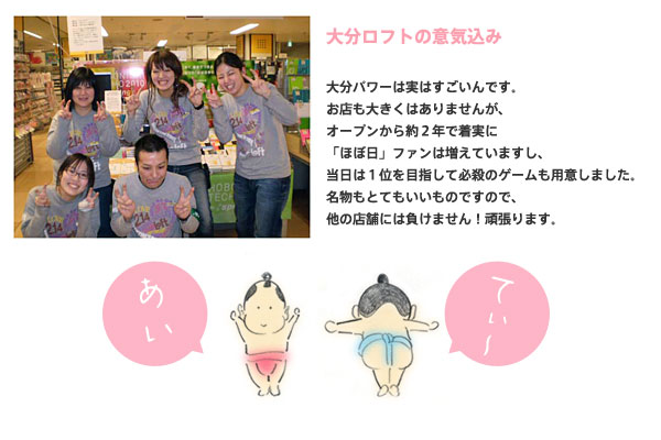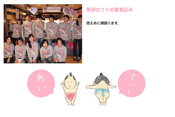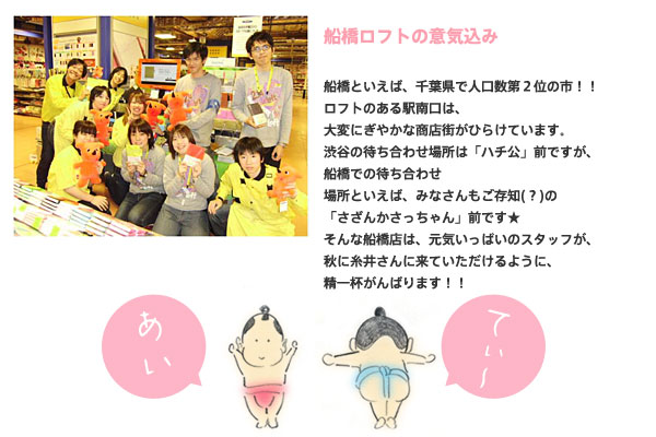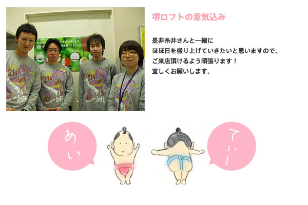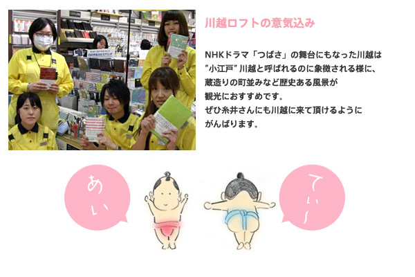 ▲埼玉県は新三郷ロフト。スタッフの方々がブタフィーヌさんや徳利に