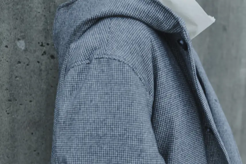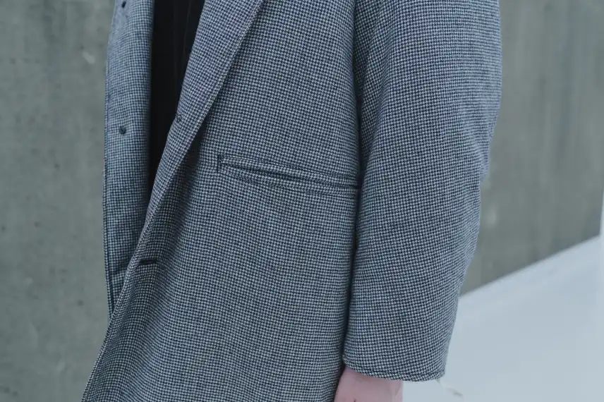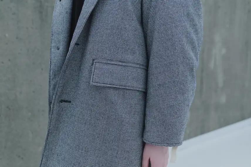 繊維がとても細やかな、SUPER100’sの上質なウール原料を使用したフラノ素材が使われています。高密度で織り上げられているのでシワになりづらく、軽い風合いながらも適度なハリコシがあります。わずかな割合でポリウレタンがブレンドされており、着用時にストレスなく、身体の動きにフィットするストレッチ性も備えています。
