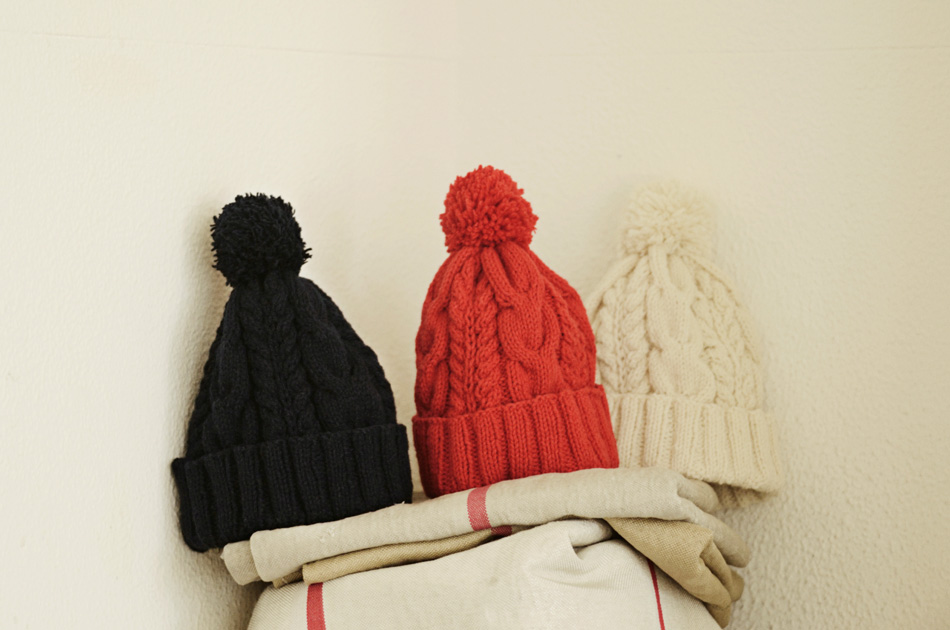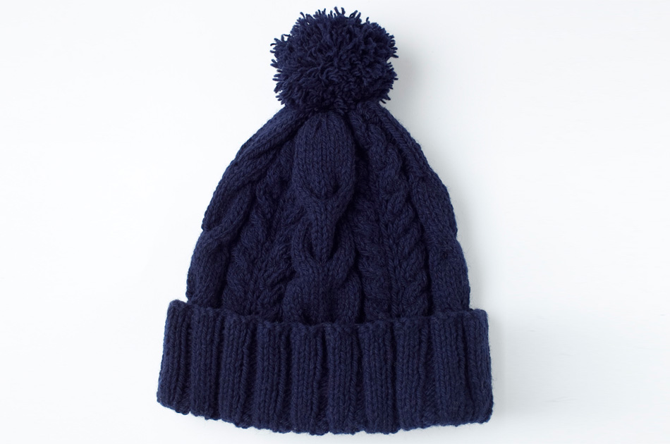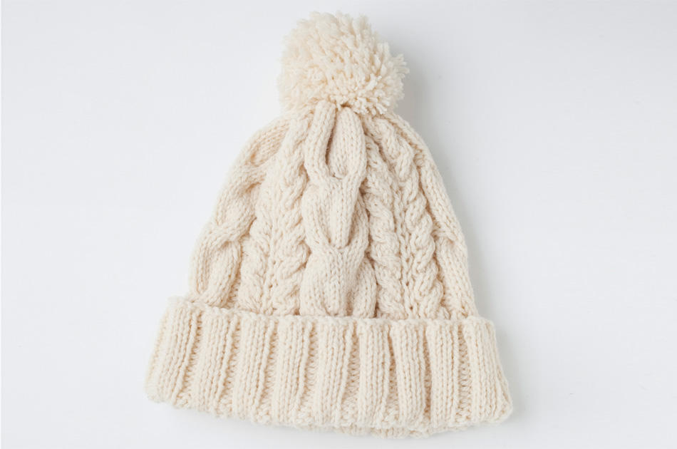 アラン諸島の伝統柄を三國万里子さんのアレンジで配した、 「アランの指だし手袋」と同様に、 「みんなで相談しているときに ポンポンがついていてかわいい感じですが、 男女兼用サイズです。 「気仙沼ニッティング」とMM01について |