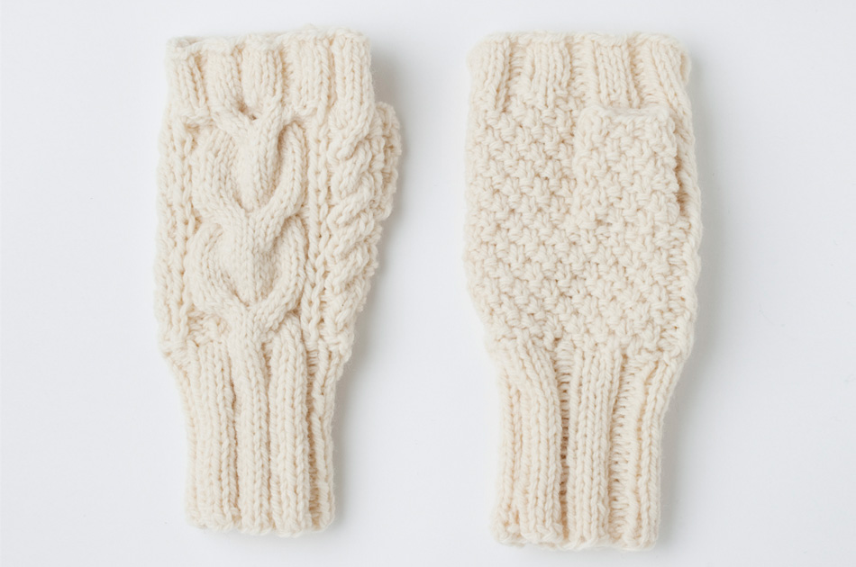 アラン諸島の伝統柄をアレンジした いちばんの特徴は、使用する毛糸にあります。 そんなアラン模様に適した毛糸を、 「アラン島に行ったとき、たった一冊だけ 指先がでるのも、この手袋の特徴。 「アラン模様」「ケーブル編み」と聞くと難しそうですが、 毛糸がたっぷりめに入っているので 気仙沼ニッティングの「物語」が込められた毛糸で、 「気仙沼ニッティング」とMM01について |