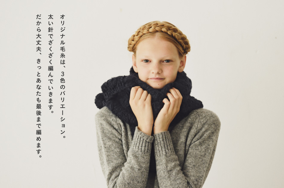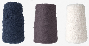 「Miknits 2014」の編みものキット、 この毛糸の特徴は、なんといっても、 独特の形状も、この毛糸の大きな特徴。 ループを密集させるこの紡ぎ方は 軽くて、ふわふわで、やわらかい。 |