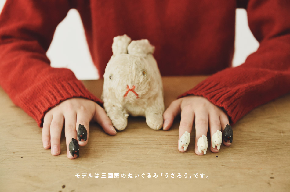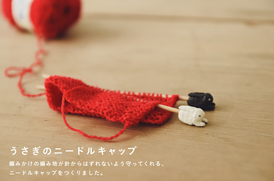 編み地が針からはずれないようにする、ニードルキャップ。 「それのかわいいやつがほしい」と三國さんは思いました。 三國家の玄関にいるという、 古いうさぎのぬいぐるみ「うさろう」をモデルにした、 ニードルキャップをつくることに。 すばらしい技術で 「うさろう」をちいさなフィギュアにしてくださったのは、 「奇譚クラブ」さんです。