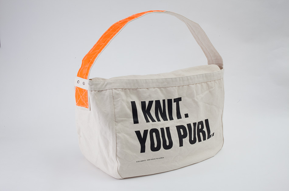 まだ暗いうちから新聞配達をする人の安全のため、 かなり大きなこのバッグを、 『YAECA』は、服部哲弘さんと井出恭子さん、 「YAECAさんが型からおこして作ったバッグに、 無地のフラップを外に出せば、 編みかけの生地と毛糸をこのバッグにぽんと入れて、 |