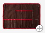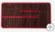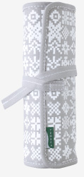 販売は終了しました 前回のMiknitsで好評だった編み針ケースを、 たいせつな道具をきちんと整理して収納するケースは、 「市販の編み針ケースは 新しいサイズは、「編み針ケース ミニ」。 新デザインは、丸めたケースの表面に施しました。 棒針、輪針、ハサミ、メジャー、ニードルゲージ、 ちなみに、道具がびっしり入っている写真がありますが、