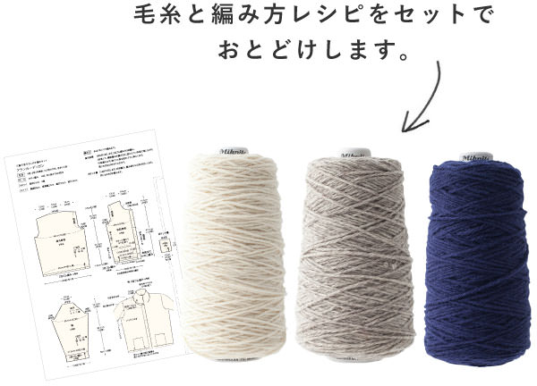 指定棒針で編んだときに使う糸量よりも少し多めの毛糸をセットしております。