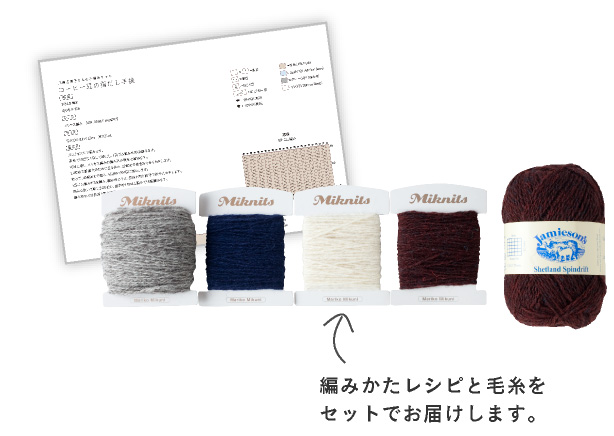 指定棒針で編んだときに使う糸量よりも少し多めの毛糸をセットしております。