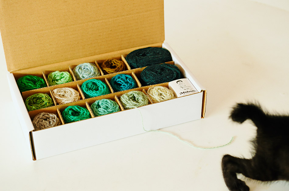 指定棒針で編んだときに使う糸量よりも少し多めの毛糸をセットしております。
