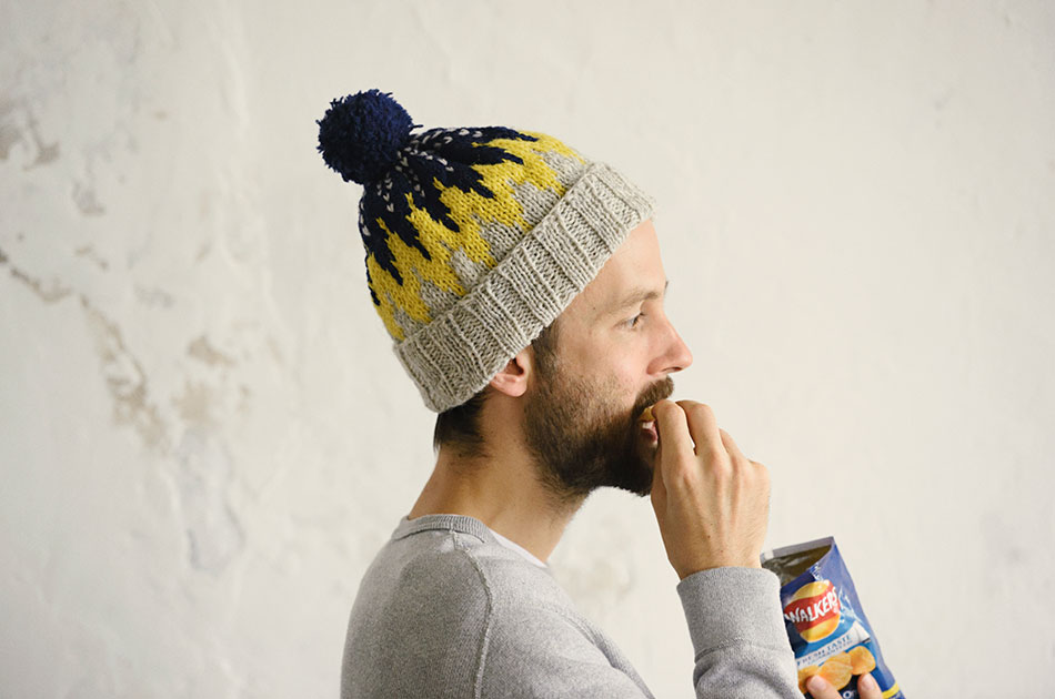 カジュアルな雰囲気のニット帽が編めるキットです。