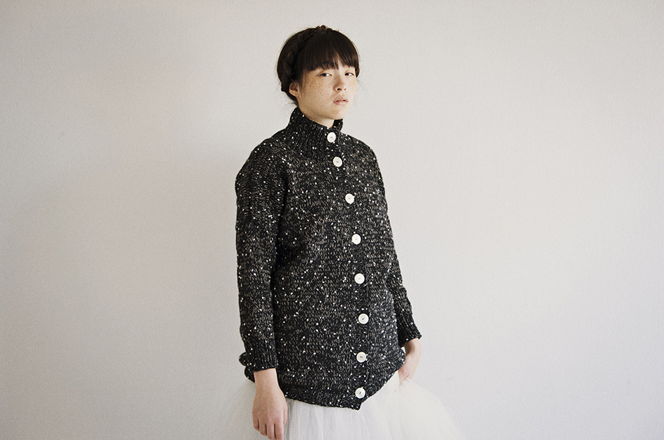 古着のカーディガンのボタンをベースに、