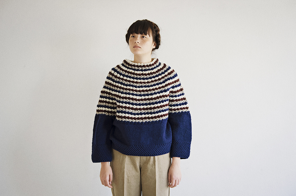 袖と裾には変わり鹿の子編みという