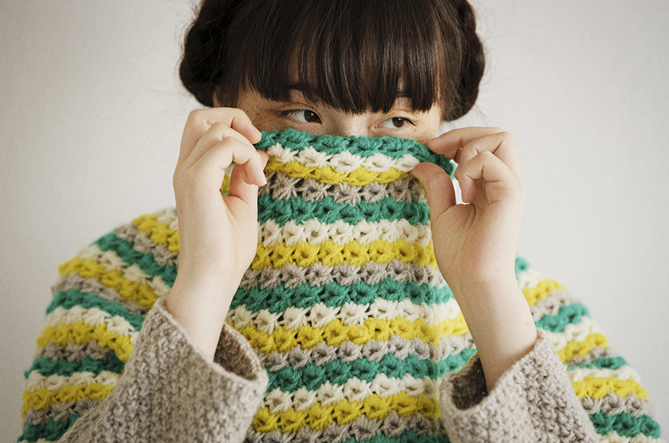 濃色の毛糸は、編み針や手に色が移ることがあります。ご了承ください。