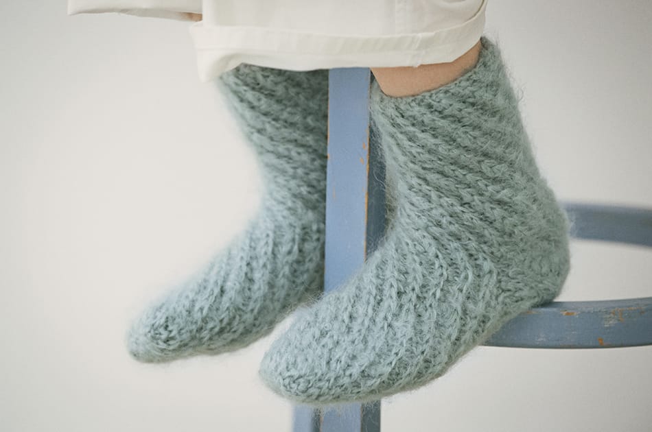 編み地のかわいい靴下が編めるキットです。