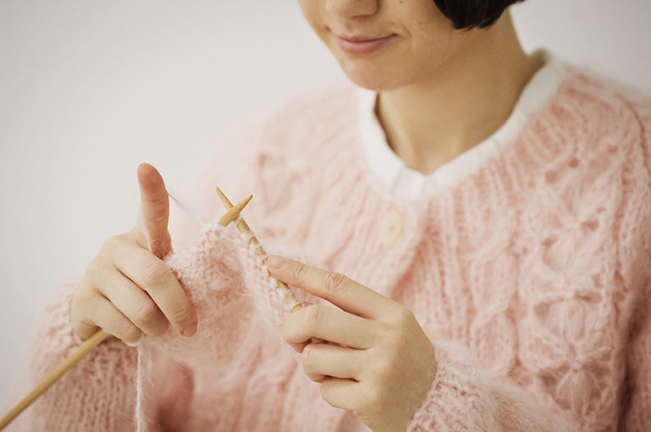 濃色の毛糸は、編み針や手に色が移ることがあります。ご了承ください。