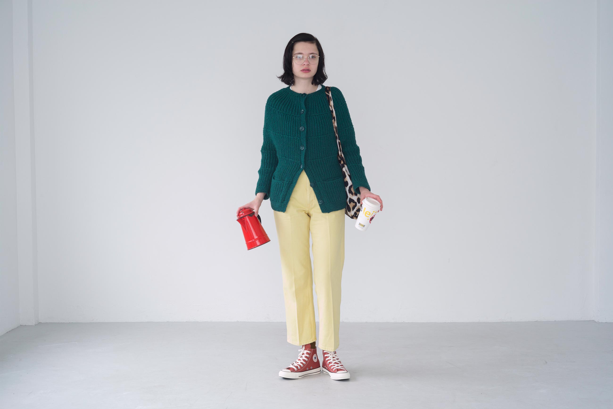 冬のお洋服に合わせやすい生成りとフォレストグリーン。