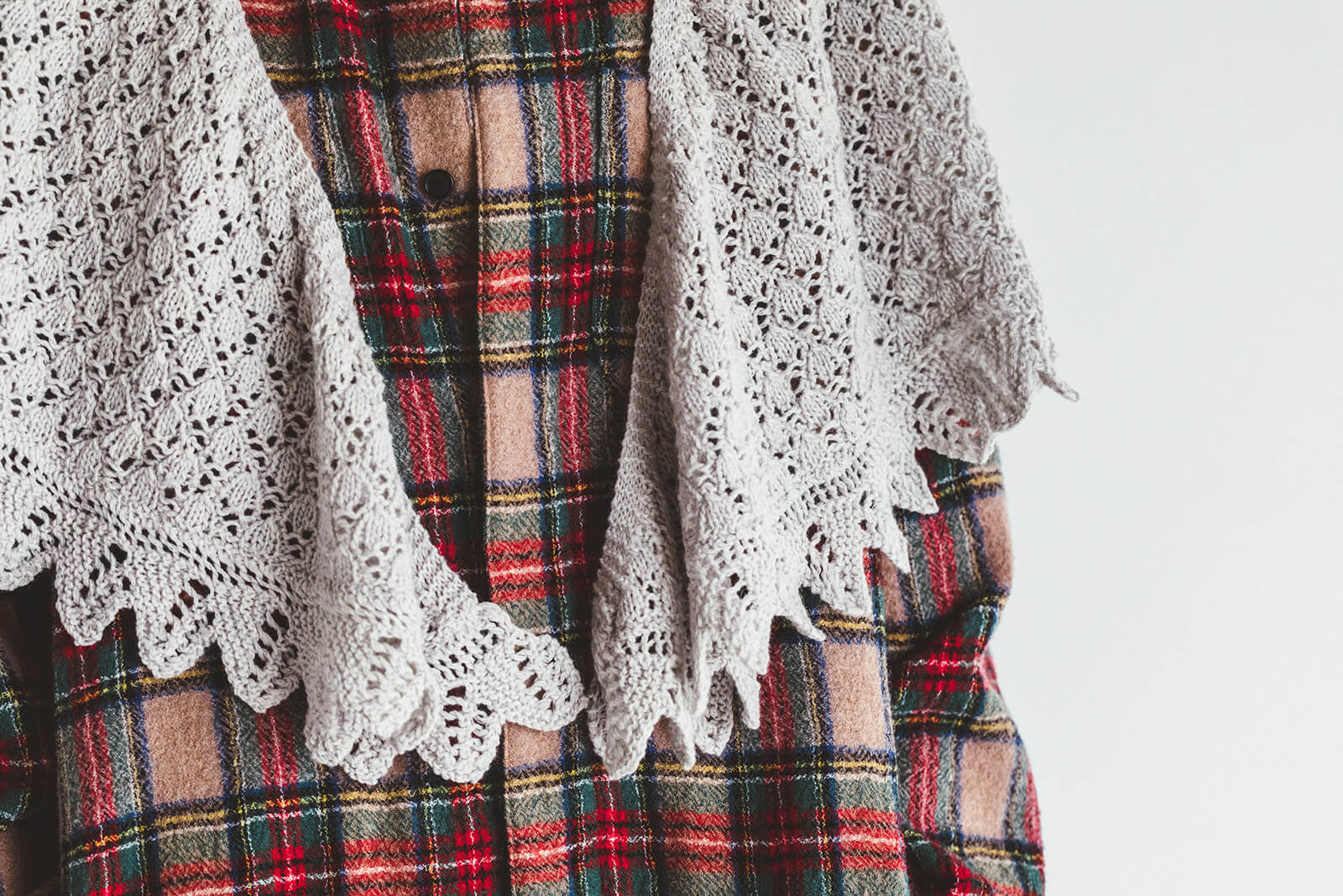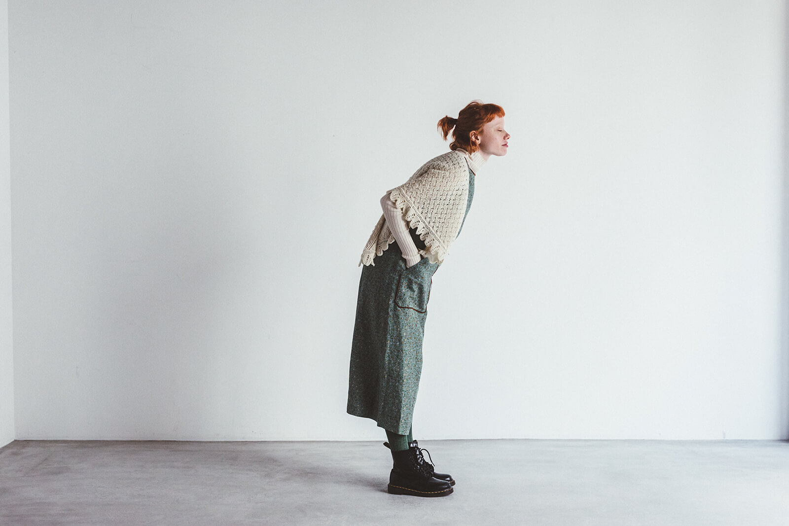 あるいは肩にショールを掛けてお店番、なんて光景も