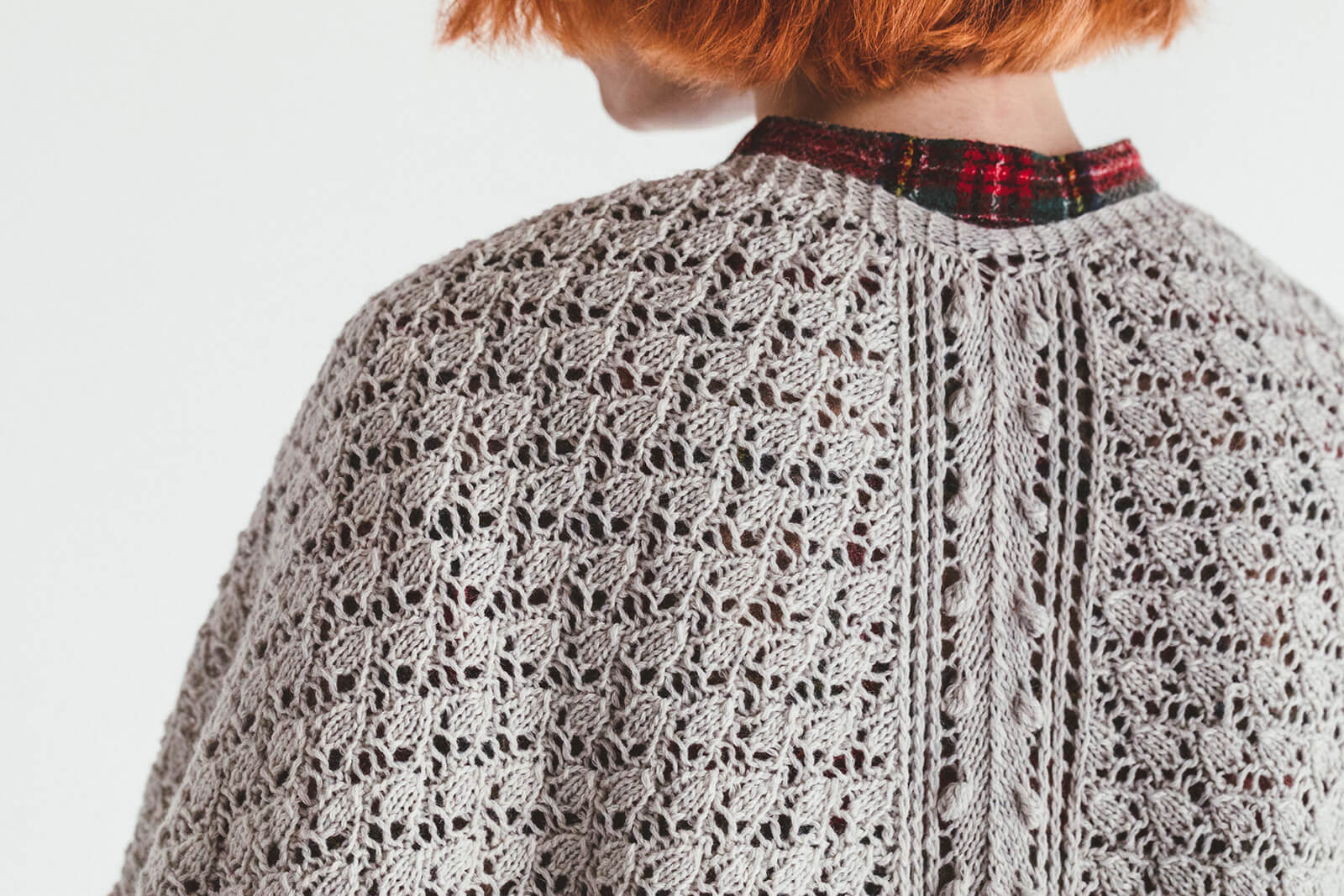 「裏目を交えた」立体的な編み込み模様を編むことで、