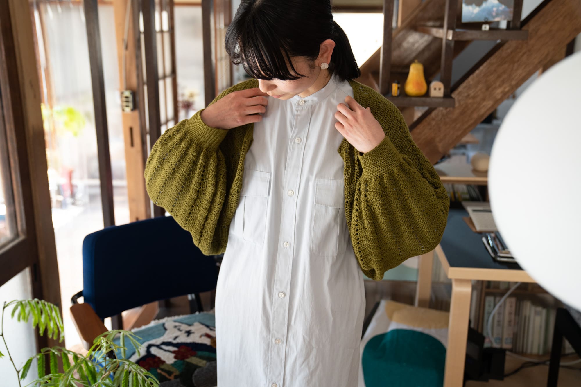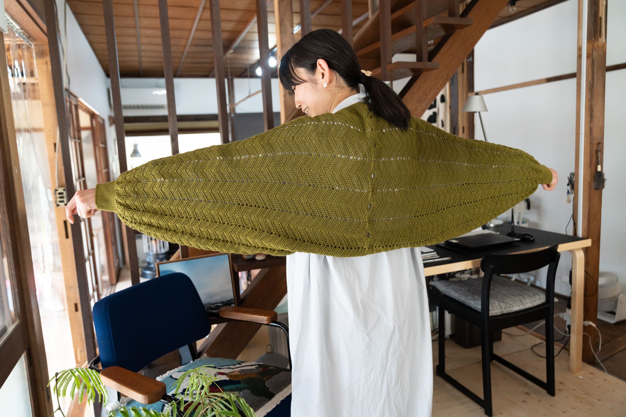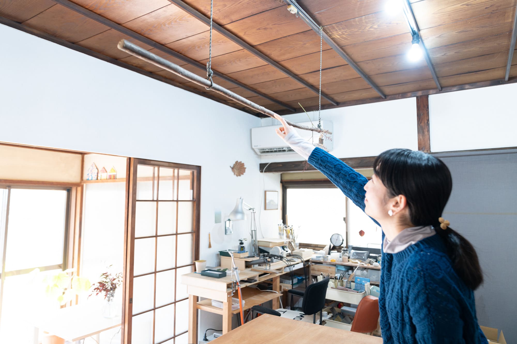 そこに制作中のモビールをかけたりして使っています。」