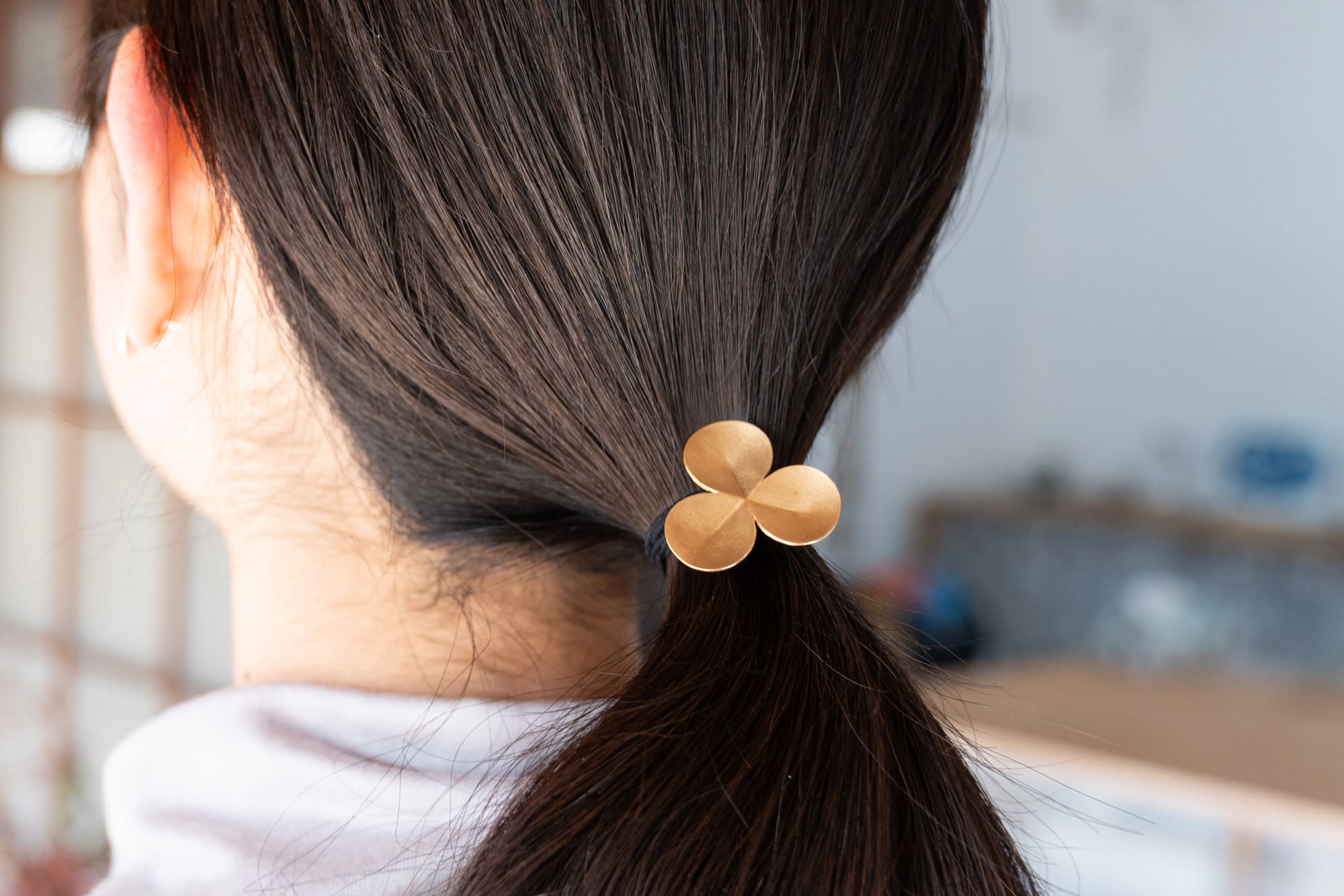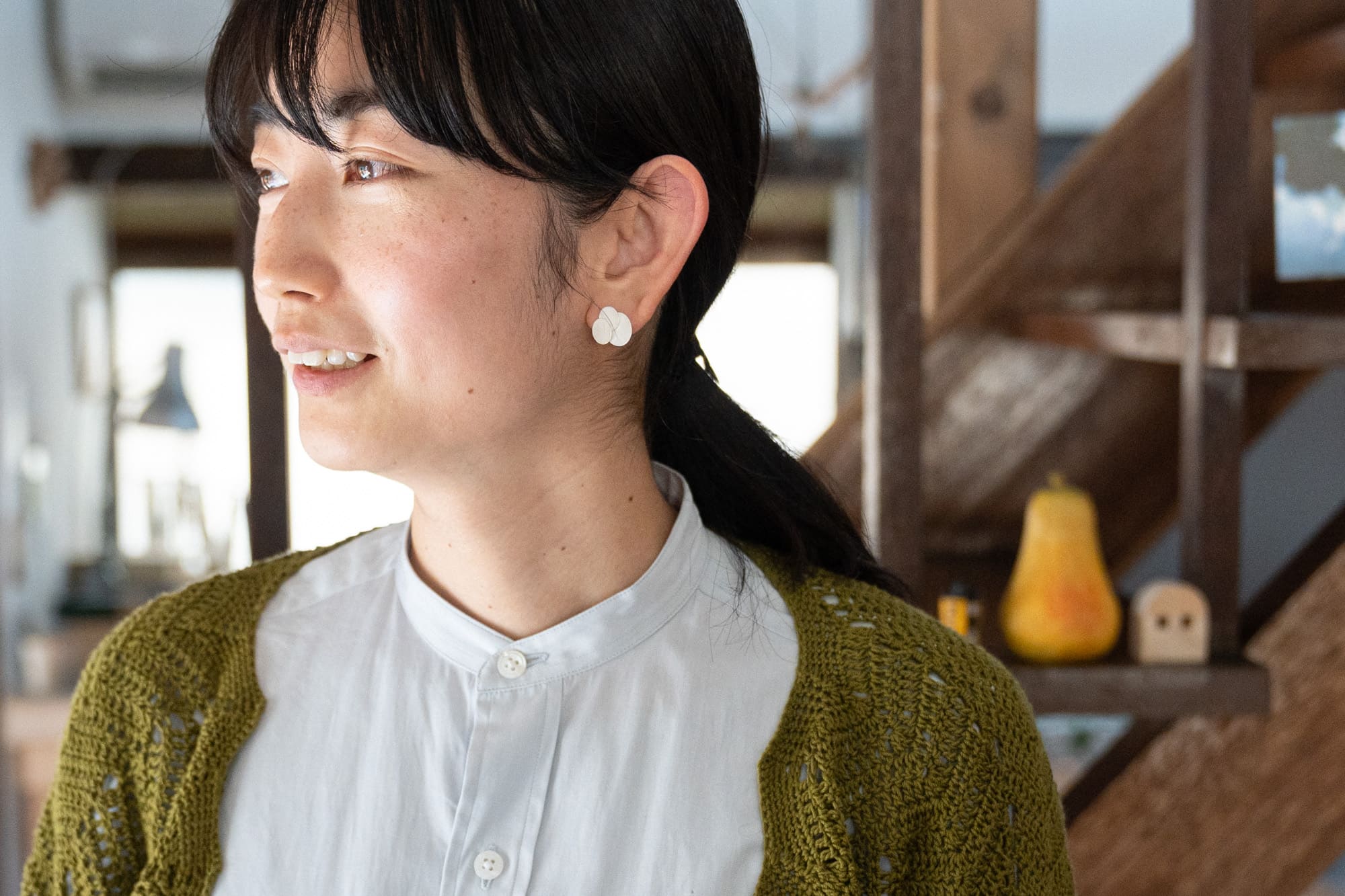 ピアスと髪飾りは、YURI MIYATAのもの。