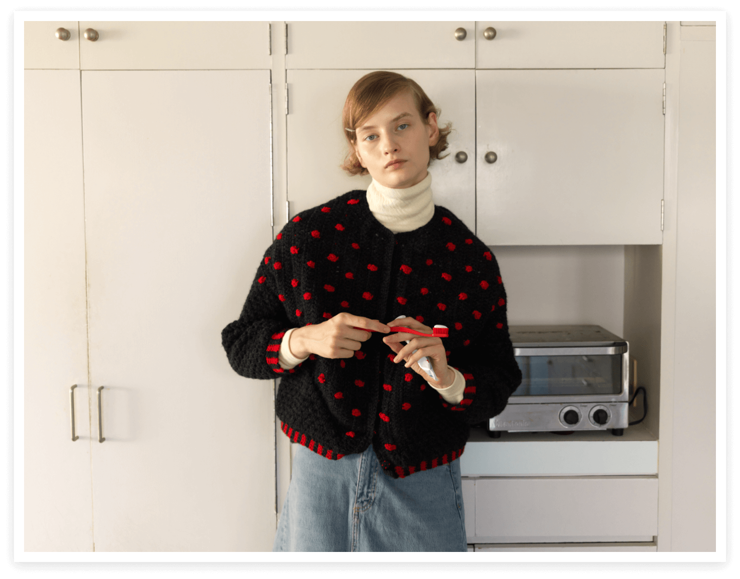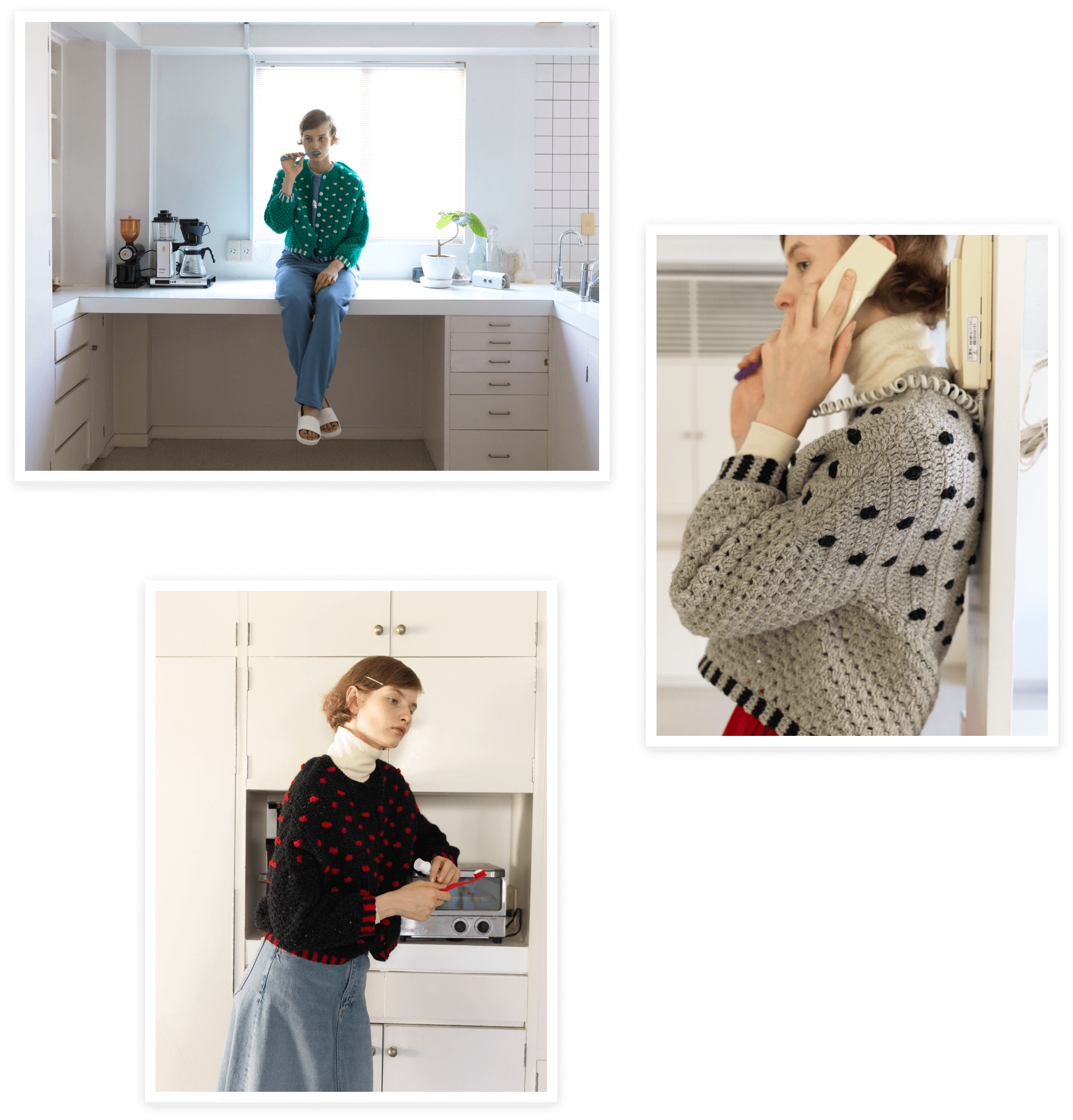 技法のことに少し戻ると、身頃の前後の水玉模様、