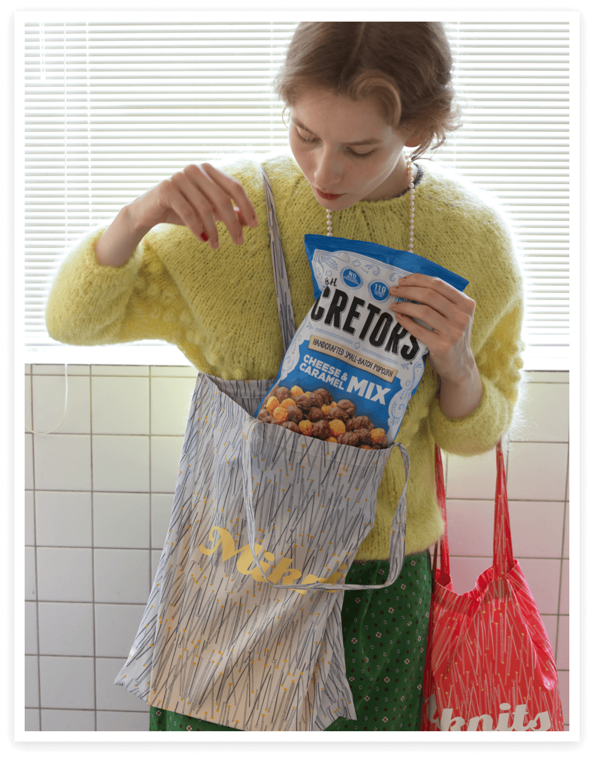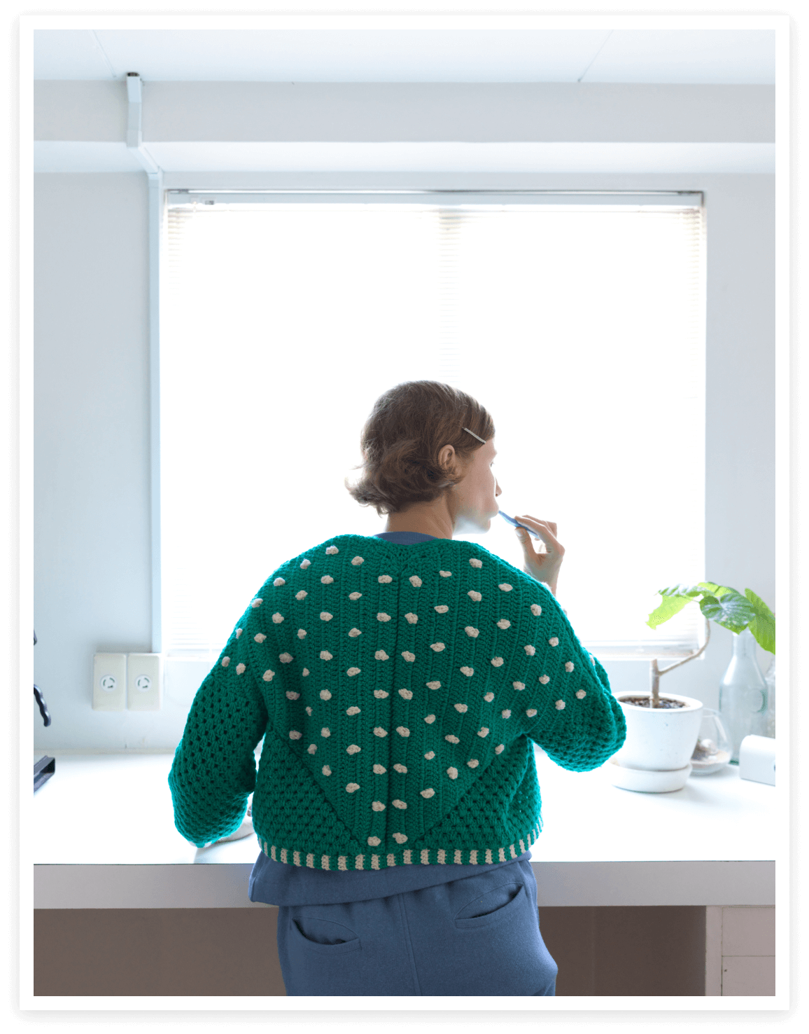 長編みのベースに「3Dのドットを編み込む」というのは、