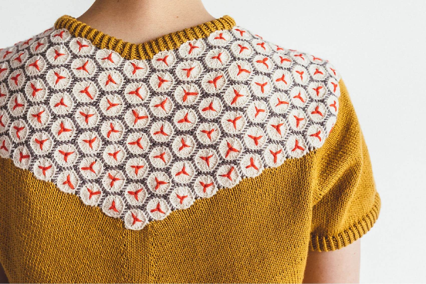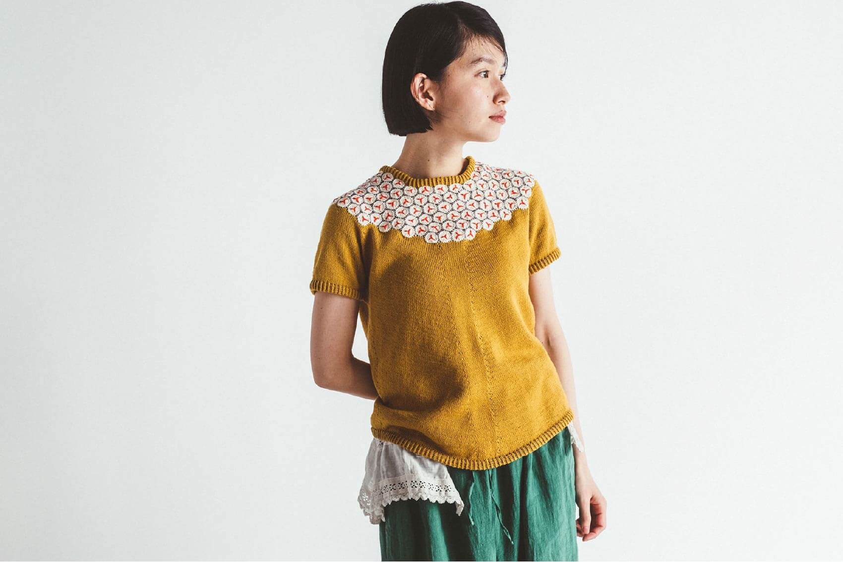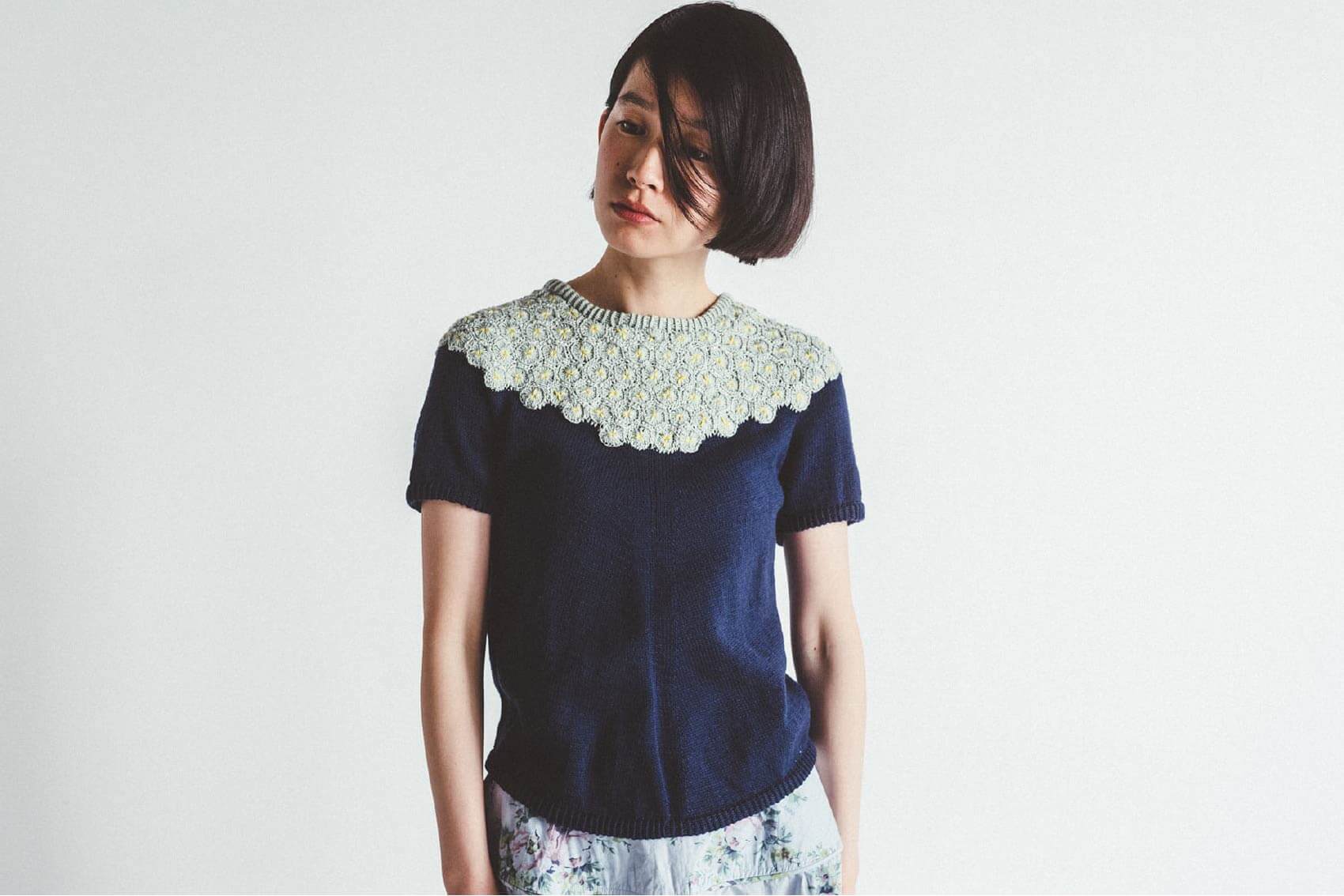 - 首から肩まわりにかけて花模様が広がるサマーニットは、