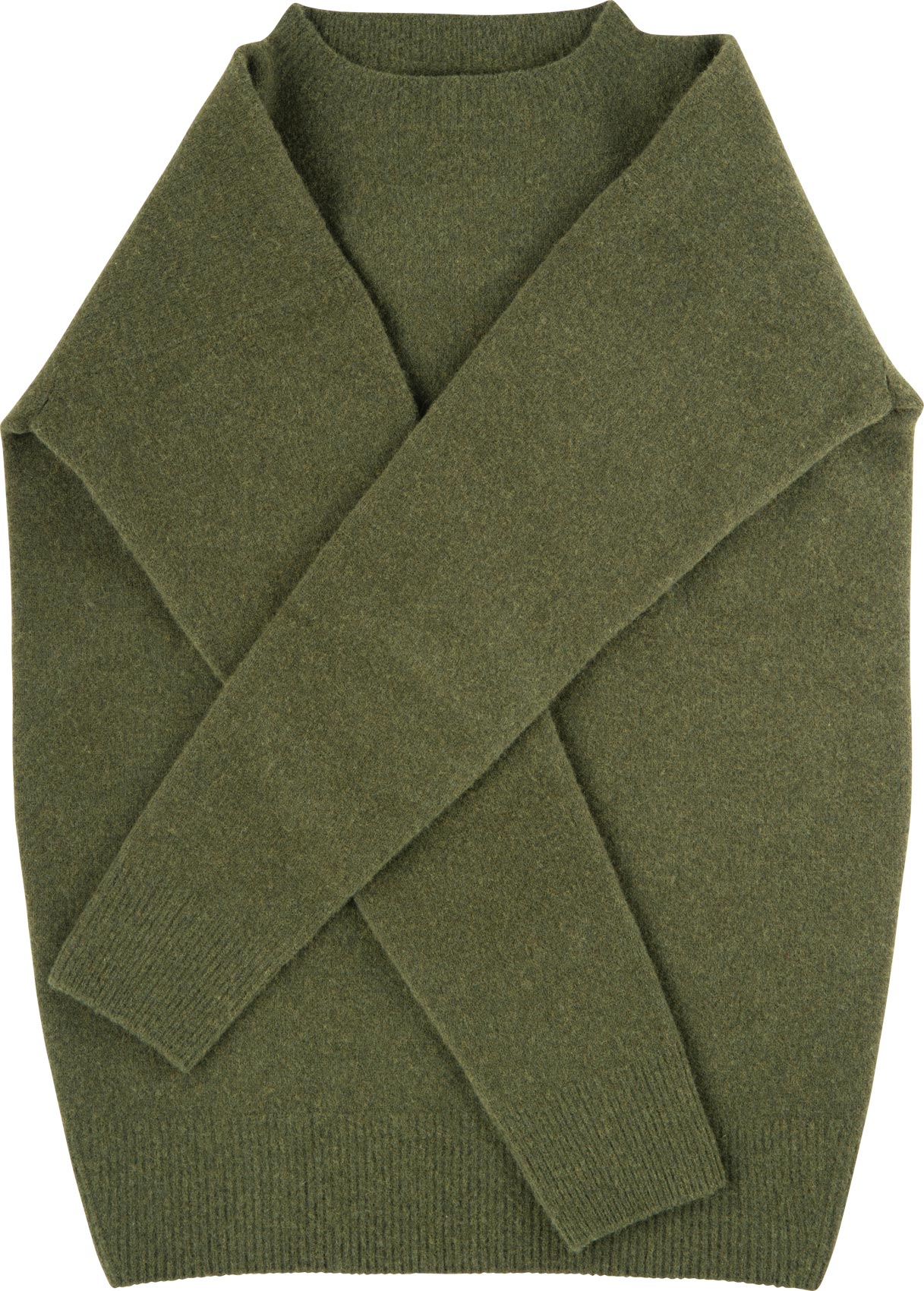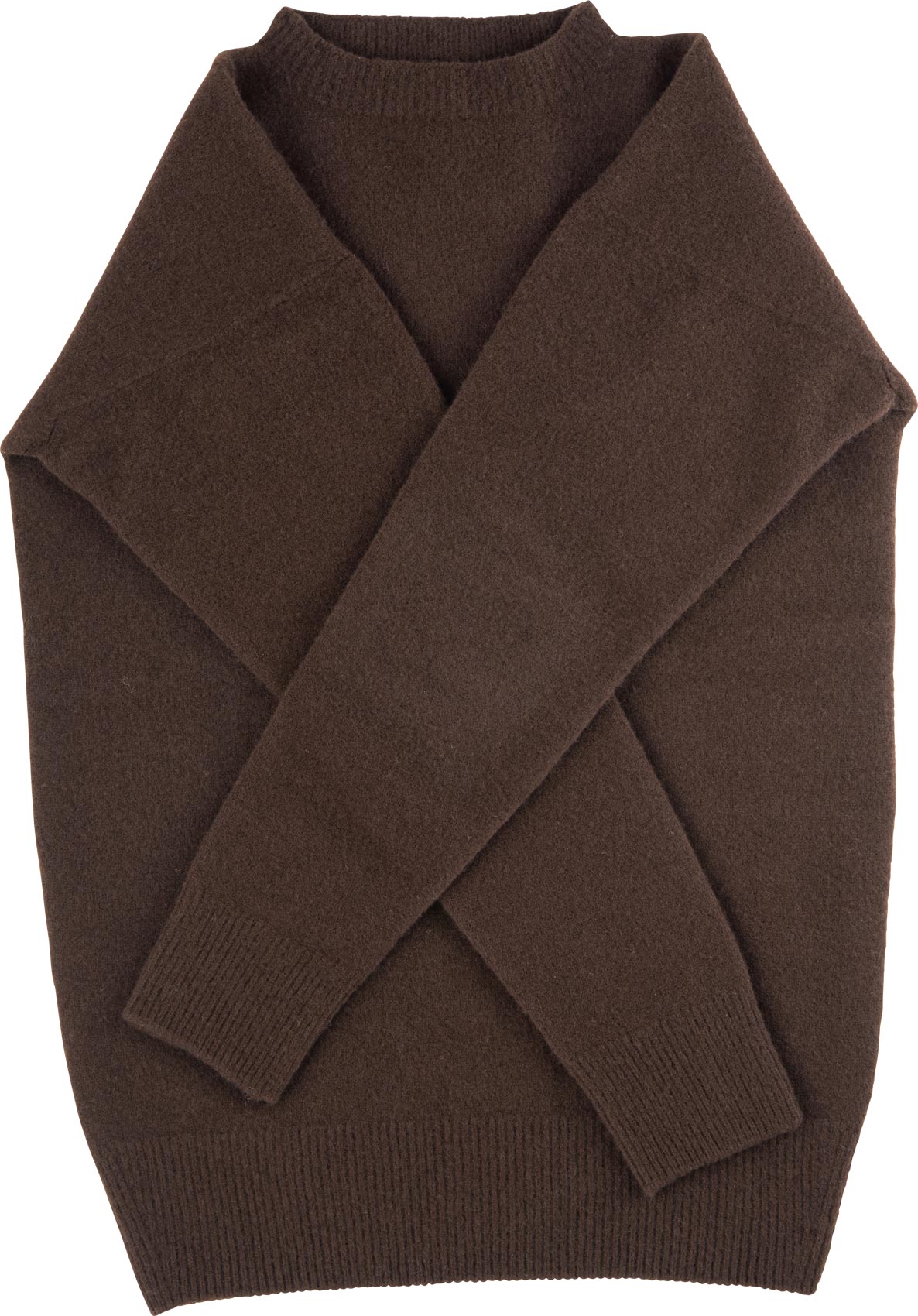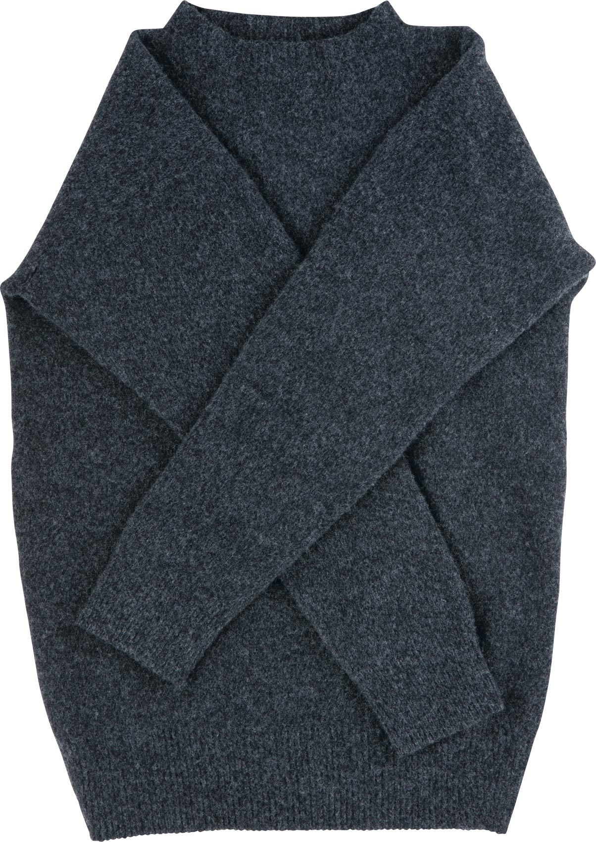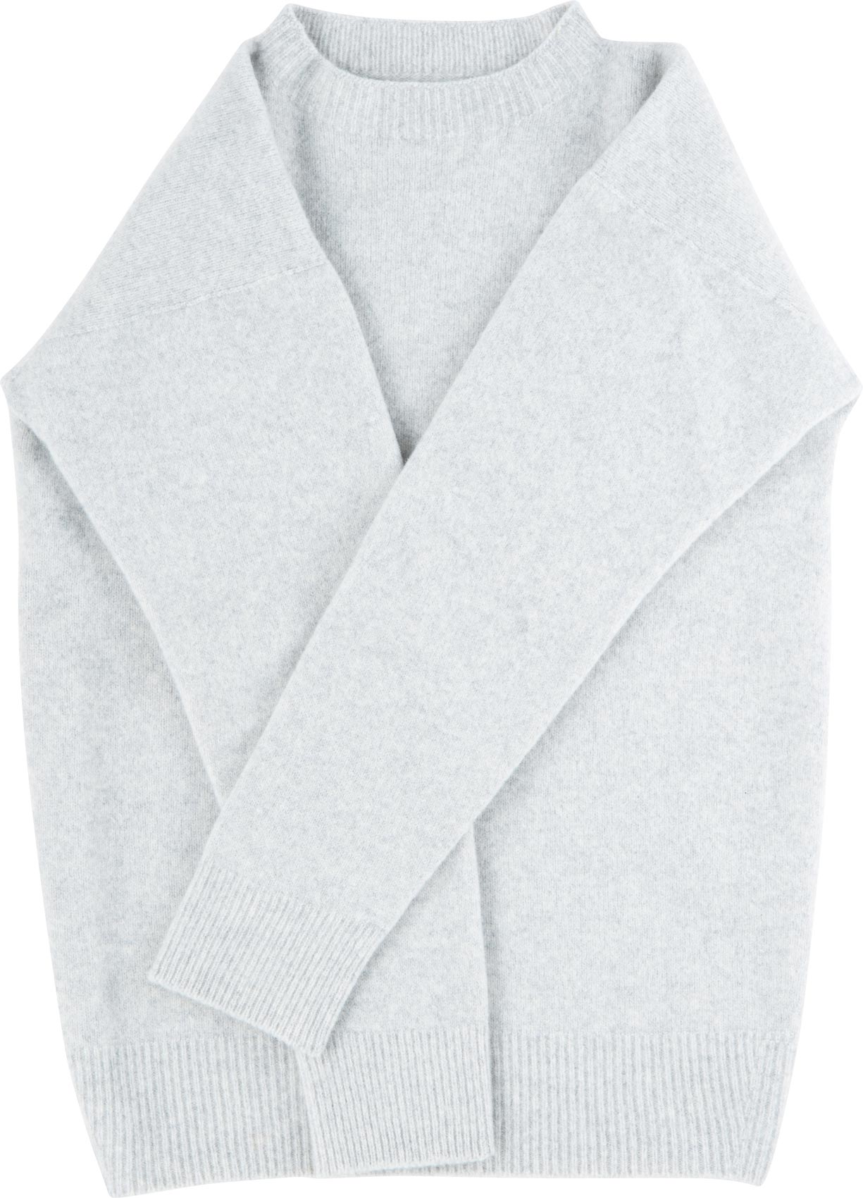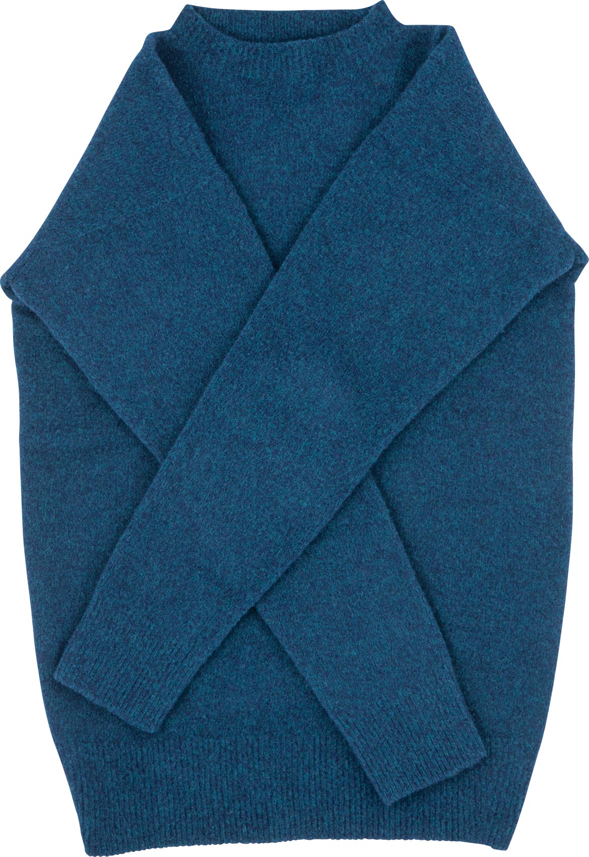 控えめなカーブの、ガンジーセーターのような襟ぐり。