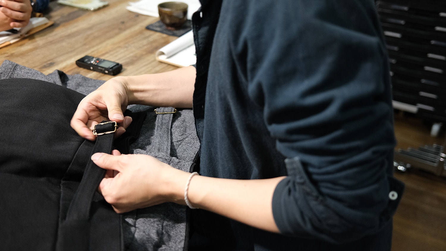 素材のお話をすると、まず布が3重構造なんです。